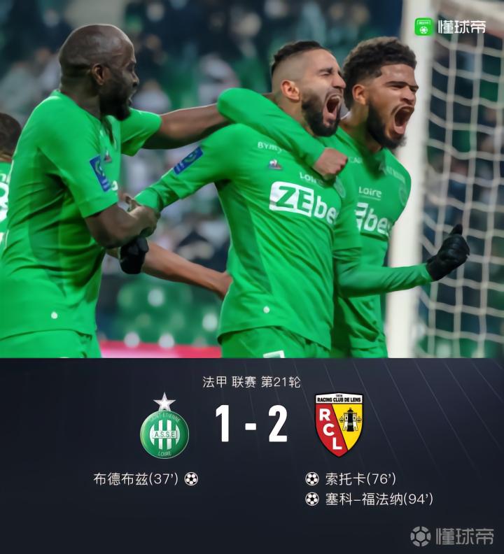 北京时间1月16日00:00,法甲第21轮,圣埃蒂安主场迎战朗斯。上半场,布德拉兹造成门将失误帮助圣埃蒂安领先。下半场,索托卡头球扳平比分。比赛尾声,福法纳绝杀。全场比赛结束,圣埃蒂安1-2朗斯。