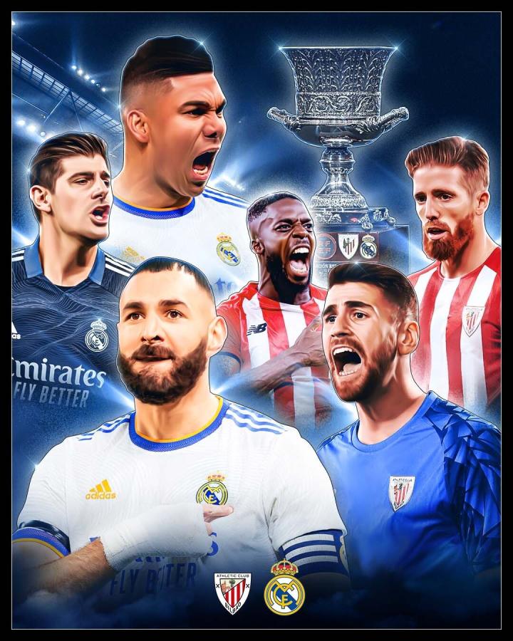 冲击赛季首冠,皇马官方发布西超杯决赛海报LaPulga @懂球帝2022-01-16 14:36北京时间1月17日凌晨2:30,皇马将和毕尔巴鄂竞技上演西超杯决赛,皇马官方赛前晒出了比赛海报。皇马和毕尔巴鄂竞技将在沙特进行西超杯决赛,争夺本赛季的首座冠军奖杯。赛前,皇马官方发布了本场决赛的海报,本泽马、库尔图瓦、卡塞米罗出镜。皇马历史上一共拿到过11次西班牙超级杯的冠军,仅次于13次夺冠的巴塞罗那。展开更多