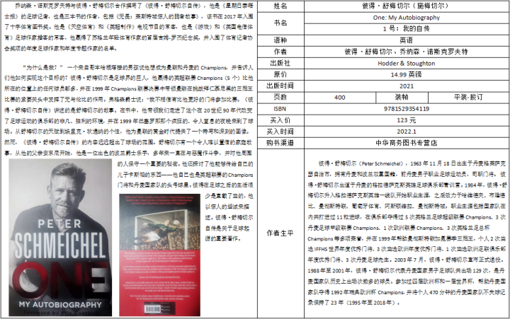 “为什么是我?” 一个来自哥本哈根塔楼的男孩说他想成为曼联和丹麦的Champions,并告诉人们他如何实现这个目标的?彼得·舒梅切尔是足球界的巨人,他赢得的英超联赛Champions(5个)比他所在的位置上的任何球员都多,并在1999年Champions联赛决赛中带领曼联在挑战拜仁慕尼黑的三冠王比赛的紧要关头中发挥了无与伦比的作用。弗格森爵士说:"我不相信有比他更好的门将参加比赛。《彼得·舒梅切尔自传》讲述的是舒梅切尔的故事。在书中,他带领我们走进了这个在20世纪90年代改变了足球运动的俱乐部的非凡、胜利的环境,并在1999年巴塞罗那那个疯狂的、令人窒息的夜晚来到了球场。从舒梅切尔的天赋到埃里克·坎通纳的个性,他为曼联的黄金时代提供了一个特写和深刻的画像。然而,《彼得·舒梅切尔自传》的内容远远超出了球场的范围。舒梅切尔有一个令人难以置信的家庭故事,从他的父亲安东尼开始,他是一位出色的波兰爵士乐手,多年来一直在与恶魔作斗争,并对他周围的人保守一个重要的秘密。他还探讨了他能够传给自己的儿子卡斯帕的东西——他自己也是英超联赛的Champions门将和丹麦国家队的头号球星。彼得在足球之后的生活很少是直截了当的,他以惊人的坦诚来描述。彼得·舒梅切尔自传是关于足球起源的重要著作。