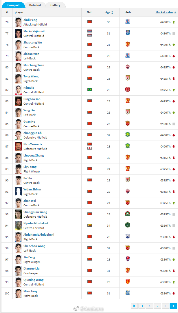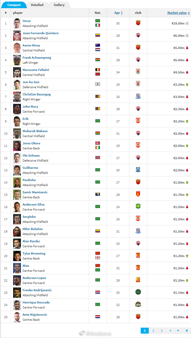 德国转会市场(TransferMarkt)中超联...