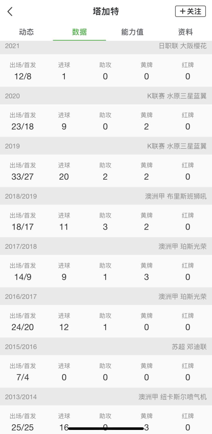 除了苏超旅欧生涯失败,塔加特无论在国内还是韩国联赛均大杀四方,其中18-19赛季获得了K联赛金靴