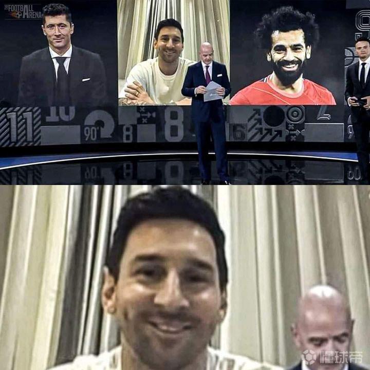 AS:在2021FIFA年度最佳颁奖典礼上,莱万获得世界足球先生时梅西的反应。