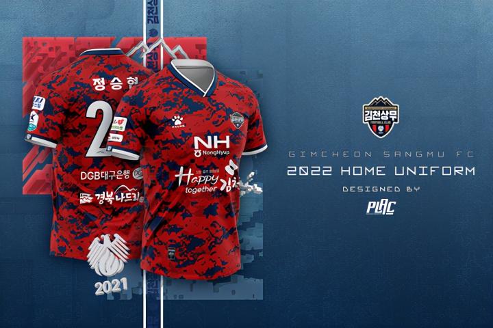 金泉尚武队19日公布了2022年队服全新的主场队服。作为K联赛球队中唯一的部队俱乐部,球队整个制服采用了作为当前韩国武装部队代表图案的“数码迷彩”。这套队服主色调还是保持了尚武的红色,迷彩意味着职业足球运动员要以军人的身份履行国防职责,发挥足球运动员的积极作用。主色调使用俱乐部的官方颜色红色和海军蓝, 金泉尚武新赛季首个主场将于下月27日下午2点在金泉综合运动场与浦项制铁队进行交手。