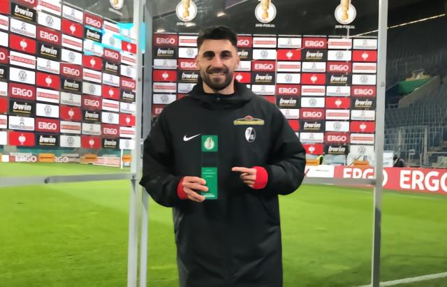 梅开二度,格里福当选弗赖堡对阵霍芬海姆德国杯比赛最佳球员