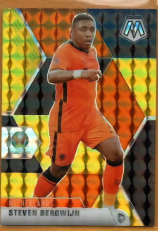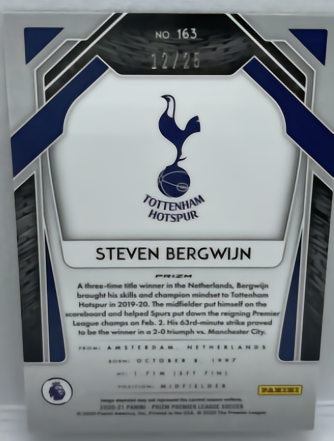这是20-21赛季PZ系列的25编橙折平行。卡牌背面提到19-20赛季冬窗期贝尔温从埃因霍温加盟热刺。2020年2月2日,在主场对阵曼城的比赛中,贝尔温在自己的英超首秀中就取得进球,帮助热刺2-0击败了卫冕冠军。