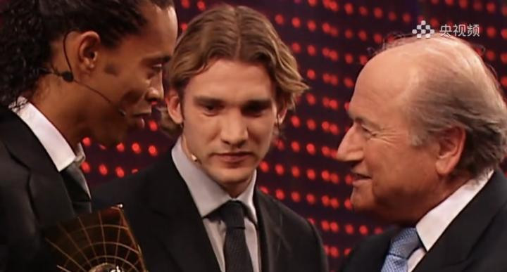 “舍普琴科荣获金球奖,但在世界足球先生的评选中败给了小罗,他投向小罗的眼光里,满是羡慕。”