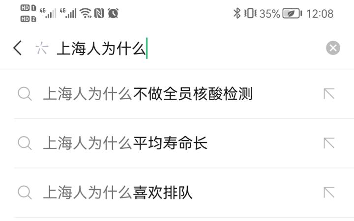 打开微信搜索框输入“上海人为什么”,自动联想的第三个问题就是“上海人为什么喜欢排队”。