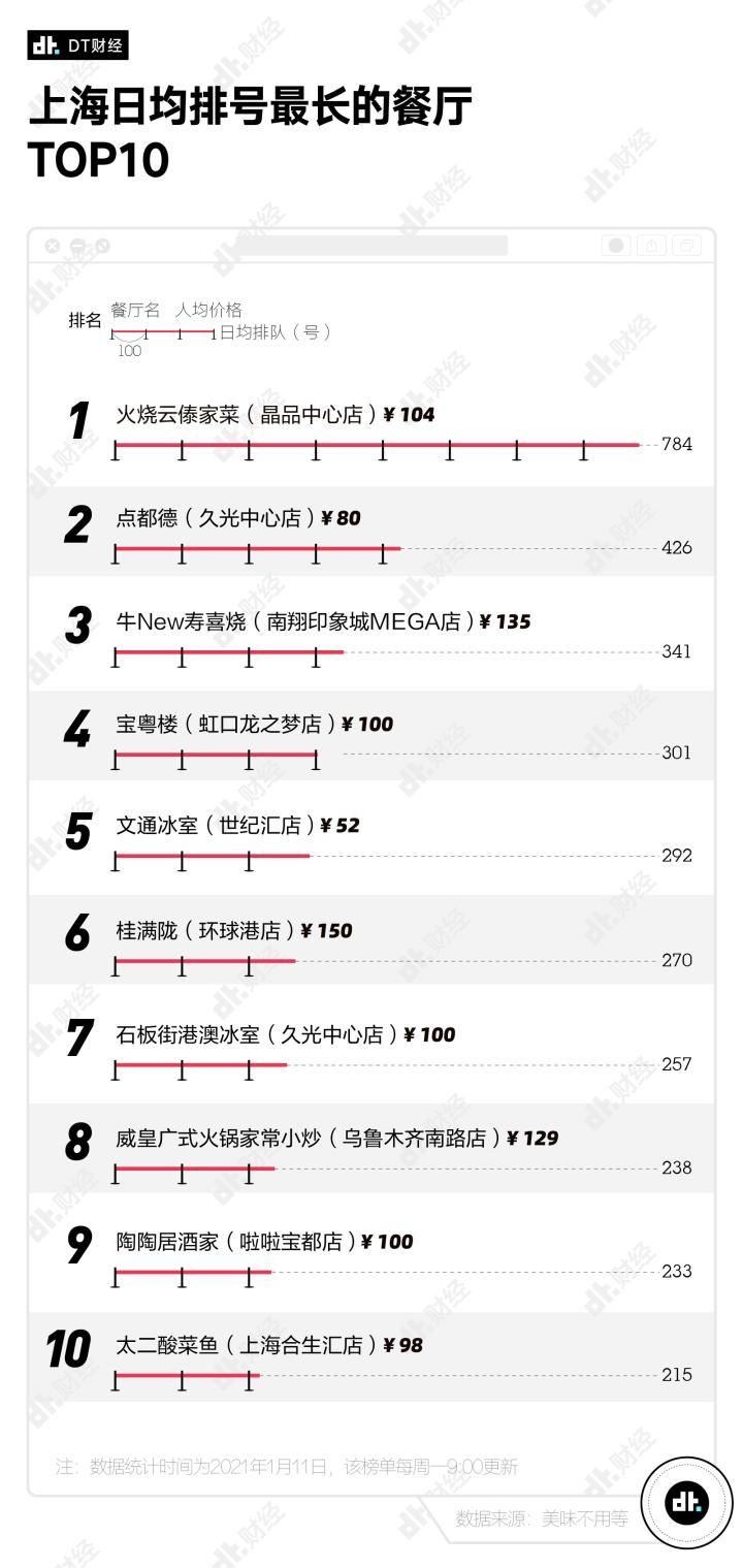 (需要特别说明的是,排队榜单来自美味不用等APP,因为市占等问题,部分热门餐厅未被收录。)