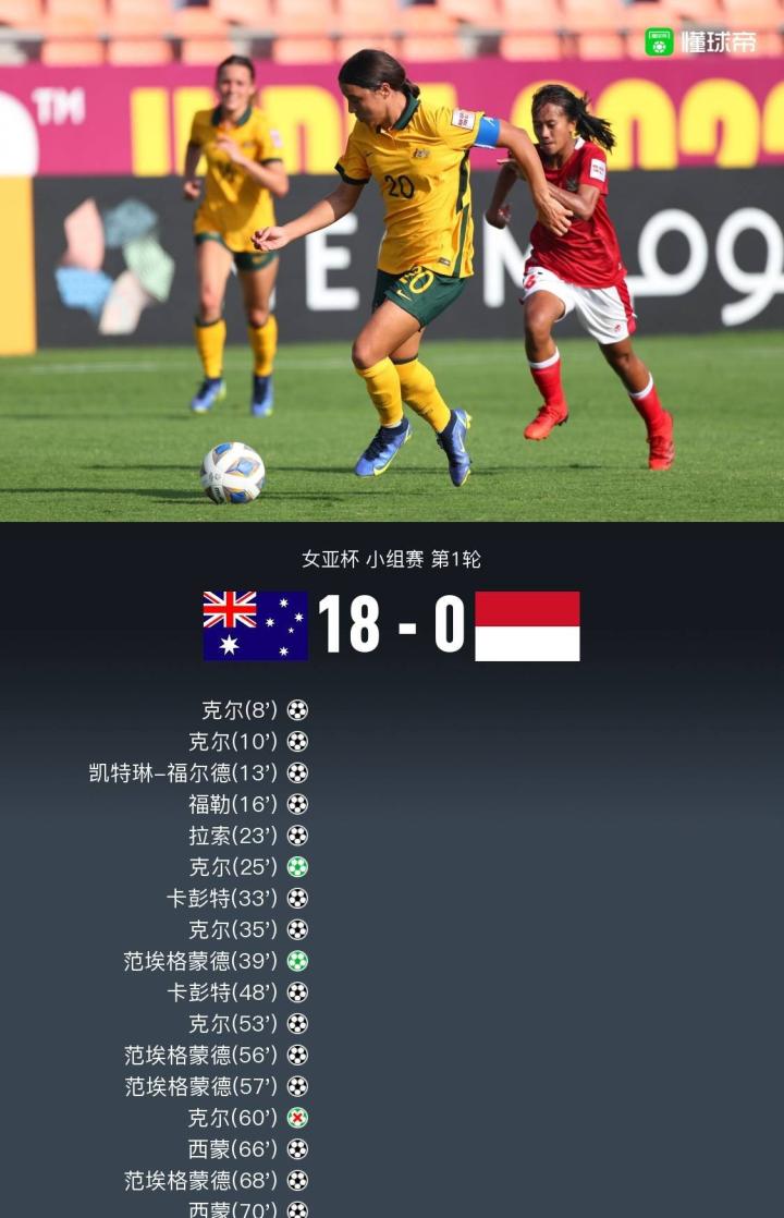 澳大利亚女足18-0印尼女足,克尔五子登科,范埃格蒙德造八球