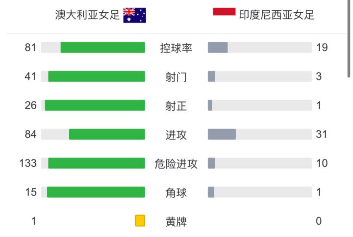 北京时间1月21日18:00,女足亚洲杯小组赛第一轮,澳大利亚女足对阵印尼女足,上半场克尔大四喜,澳大利亚前场多点开花,半场九球领先。下半场澳大利亚队也丝毫攻势不减,攻入9球,全场比赛结束,澳大利亚女足18-0血洗印尼女足获得胜利。