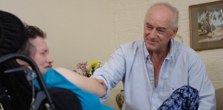 (图)约翰斯顿时常参加公益活动,来看望脑损伤者