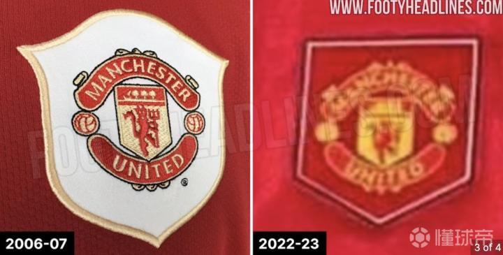 足球装备网站footyheadlines更新了曼联2022/23赛季主场球衣的其他细节,球衣的胸口队徽使用了五边形盾牌作为装饰。