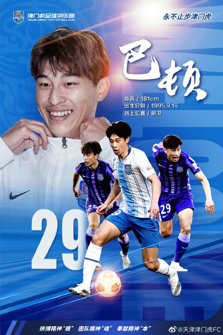 球员巴顿正式加盟天津津门虎足球俱乐部,将代表津门虎队出战新赛季的中超、足协杯等赛事。