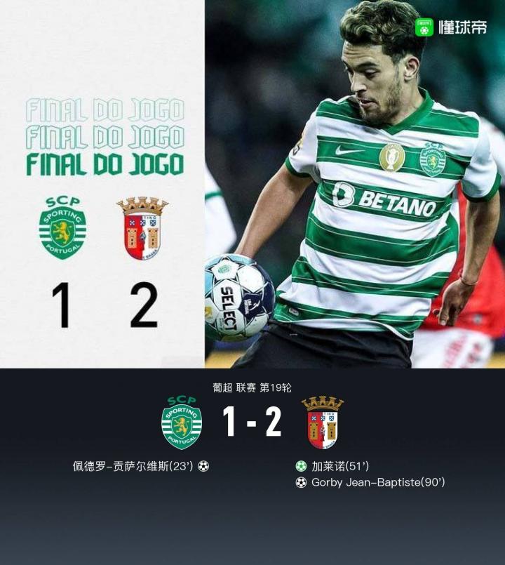 葡萄牙体育1-2遭布拉加逆转,巴普蒂斯特绝杀贡萨尔维斯破门