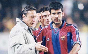 不过很快他们就发现,克鲁伊夫特地设置的无锋阵面对曼联以442为骨架搭建的强力中场时似乎并没有什么效果,放弃边路的红魔牢牢抓住了控球上的主动,使得红蓝军团空有两边的速度优势,却始终没法将球传导到对方门前。