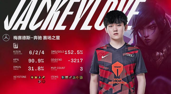 第26分钟,V5偷打大龙被发现,JackeyLove秒掉金克丝立功,TES打出1换2收下大龙。