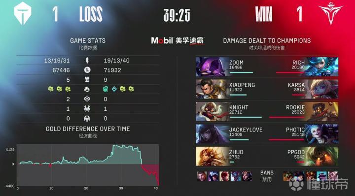 第39分钟,V5拿到龙魂团灭TES一波终结比赛,恭喜V5成功将比分扳平。