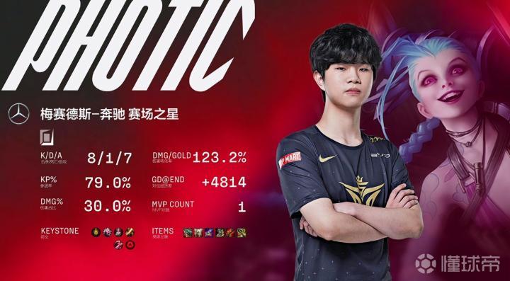第24分钟,小龙团,V5.Photic金克丝抢到听牌龙打出一波2换2。