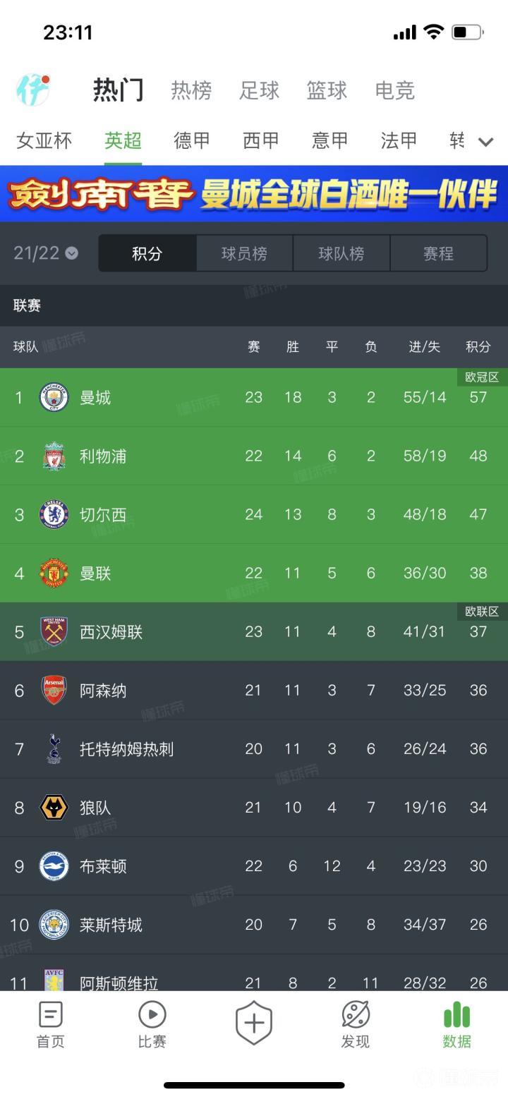浅谈五大联赛积分榜一、英超联赛曼城一如既往稳定,...