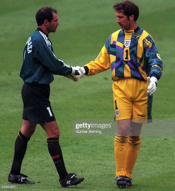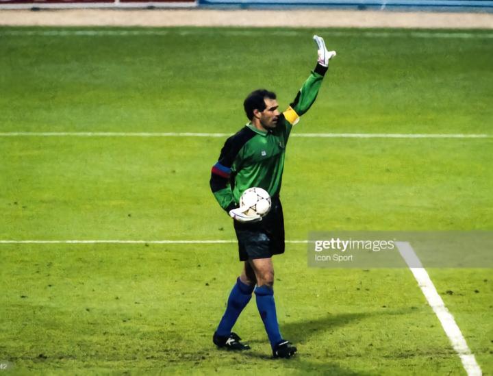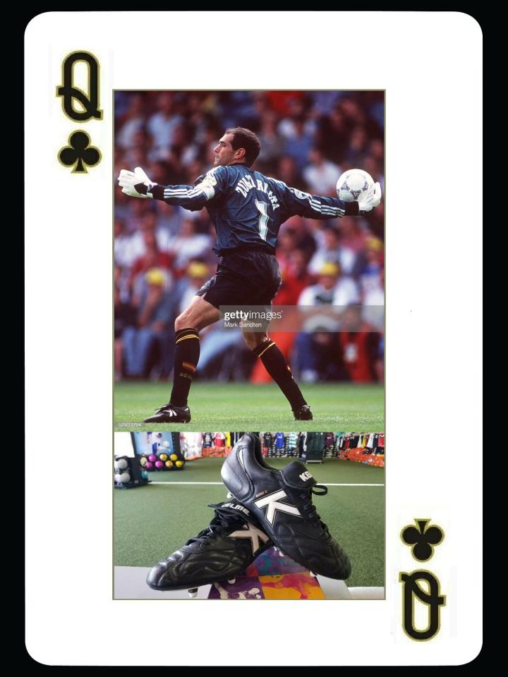巴萨梦一队的门将苏比萨雷塔,也是kelme赞助球星中比较有名的,他当时也是西班牙队毫无争议的主力门将,所以也成为了卡尔美赞助的对象。他从1986年开始效力巴萨,立功无数,帮助巴萨梦一获得了许多荣誉,但1994年欧冠决赛被米兰4比0血洗后,苏比萨雷塔加盟了巴伦西亚。苏比萨雷塔参加过90、94、98三届世界杯,但是1998年世界杯晚节不保,他在尼日利亚队的比赛中,扑救一次下地传中球时判断失误,造成乌龙球。这一球也激励了尼日利亚队的士气,最终他们三比二翻盘西班牙,将斗牛士军团淘汰出局。世界杯之后,苏比萨雷塔也在郁闷中结束了自己的职业生涯。