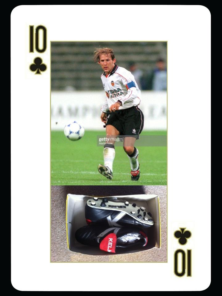 最后一位球员虽然短暂效力巴萨一个赛季,但绝对值得铭记,他使用卡尔美球鞋是在巴伦西亚,并且是他的巅峰时期,他就是两次带领巴伦西亚杀入欧冠决赛的门迭塔,门迭塔最早使用一双卡尔美的红色鞋舌球鞋。当时他是欧洲最炙手可热的中场,两次当选年度欧洲最佳中场,2000年欧锦赛表现也非常出色。之后nike再次和门迭塔签约,并且对他非常看好,可惜两次欧冠决赛失利后,门迭塔在2001年夏天转会意甲拉齐奥,谁知道造化弄人,欧洲最佳在拉齐奥中场居然打不上主力,随后被租借到巴塞罗那效力了一个赛季,在巴萨他的表现只能算中规中矩,一个赛季后,又被租借到了米德尔斯堡,并且逐步走向平庸,最终在英超弱旅低调退役。