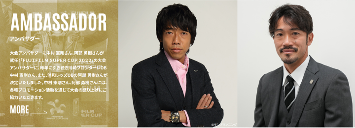 本次超级杯的宣传大使特地请到了已经退役的两队的传奇球员,川崎前锋的中村宪刚和浦和红钻的阿部勇树。