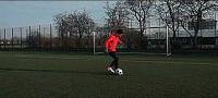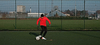 同时,将我们的惯用腿摆动到弱势腿上,让球弹起来,就像下面这样。