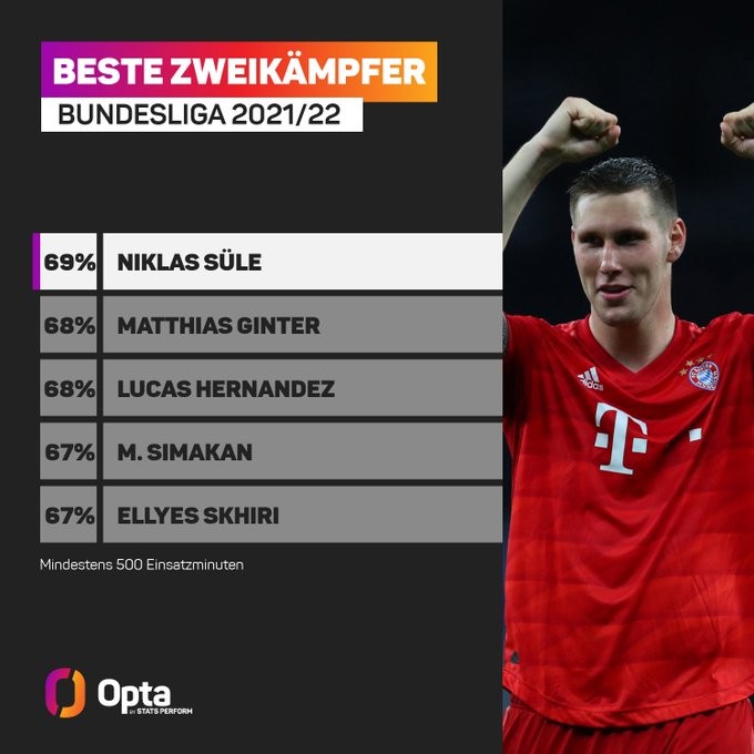 本赛季德甲出场达500分钟的球员中,聚勒对抗成功率最高阿漂 @懂球帝2022-01-26 21:05拜仁董事会主席卡恩在今天早些时候确认,中卫聚勒将在本赛季结束后自由转会离队,权威数据统计机构OPTA透露,在本赛季德甲出场时间超过500分钟的球员中,聚勒是对抗成功率最高的。聚勒以69%的对抗成功率排名第一,位列第二的同样是一名将在今夏自由转会离队的球员——门兴后防多面手金特尔,排名三到五位的分别是卢卡斯-埃尔南德斯(68%)、西马坎(67%)和斯希里(67%)。展开更多
