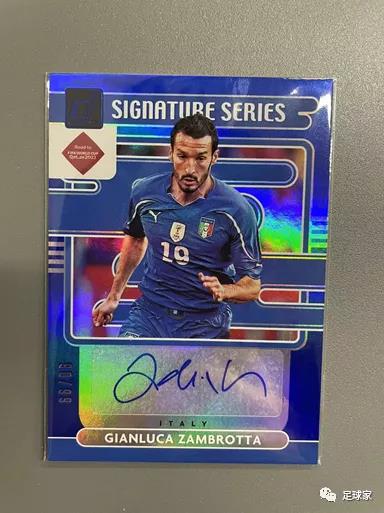 这张是意大利的传奇后卫赞布罗塔的签字,墨迹清晰完整不出框,自身卡品也相当不错,蓝折是十分好看的。唯一可惜的是编大了些,不然会有更好的价格。