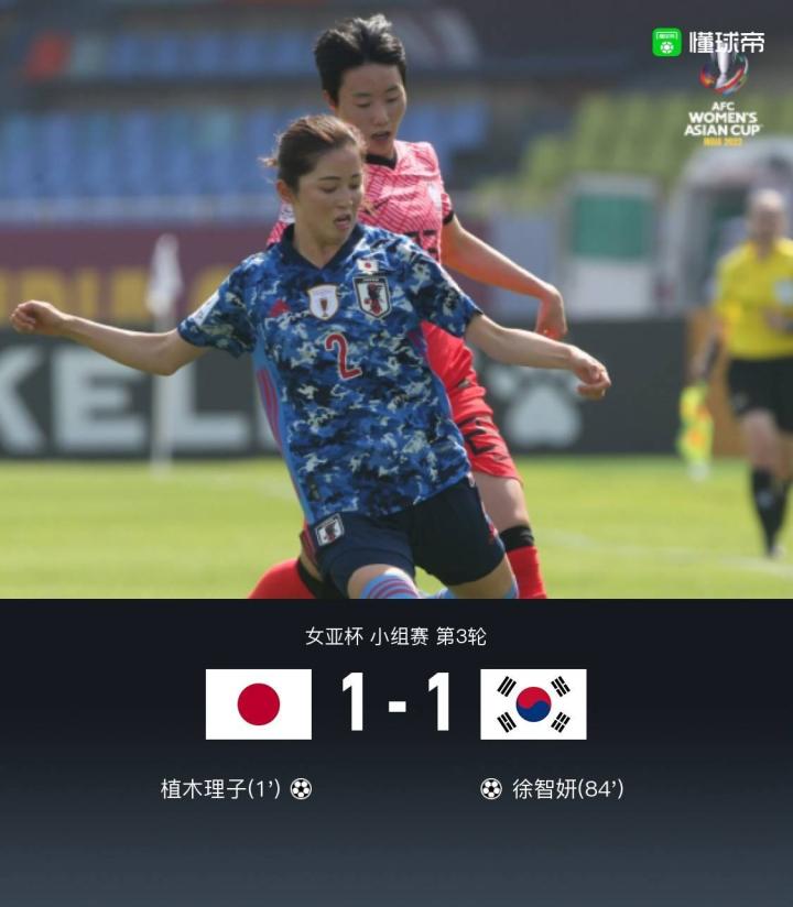 第85分钟,乱战中徐智妍进球扳平比分,韩国1-1日本。