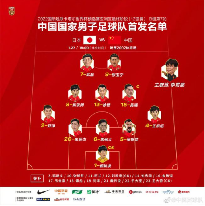 国足VS日本,首发名单出炉!武磊张玉宁领衔,你怎么看?