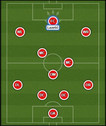 拉泽蒂奇的最佳位置是4-3-3阵型中的中锋。