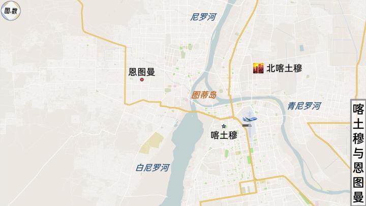 苏丹的首都是喀土穆,最大城市是恩图曼,加上尼罗河以东、青尼罗河以北的北喀土穆,组成了“苏丹三镇”,有点儿类似于湖北省的“武汉三镇”,其中尼罗河西岸的恩图曼相当于长江南岸的武昌,而喀土穆和北喀土穆大约是汉口和汉阳,尼罗河中的图蒂岛(Tuti)则好比是长江中的天兴洲。