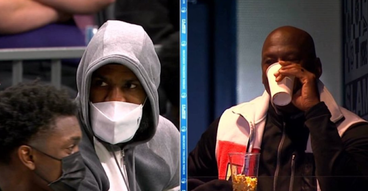 作为黄蜂队的老板,乔丹到了现场看球,他跟湖人队的老将詹姆斯同框,显得非常有意思。眼看着黄蜂队被湖人队追分,甚至有被逆转输球的可能,乔丹坐不住了,在最后16.8秒生气地提前离场。