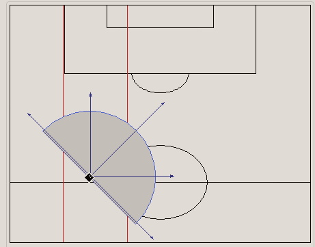 其次,半区内的传球方向选择的自由度更高。占据半区所带来的对于对手阵型的拉扯,能自动提供给攻方更好的视野来探索和利用对手身后以及防守线之间更靠近球门的危险地带。此外,处于半区中的球员面朝球门方向会自带一部分边路和侧身后的视野,在保持一定侵略性身位的同时,也能增加一些由边到中或由中到边的传球路线的选择,极大地丰富了球队的战术思路。