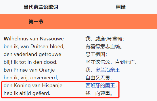 为了纪念这位伟大的亲王和他的橙色拿骚家族,荷兰人把《威廉颂》作为自己的国歌。第一段歌词(荷兰比赛唱的主要是这段)的那句Een Prinse van Oranje,ben ik, vrij, onverveerd(我,奥兰治亲王(橙色亲王),自由又无畏);den Koning van Hispanje,heb ik altijd geëerd(西班牙国王,我永远尊重),正是这位威廉一世一生最好的描述。