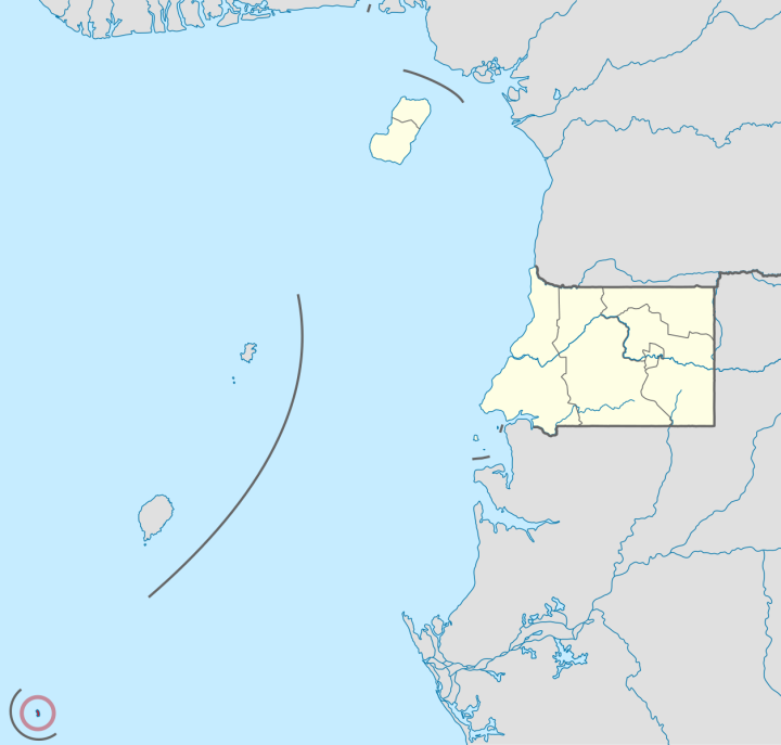 赤道几内亚位于北纬4°和南纬2°之间,东经5°和12°之间。尽管它的名字是“赤道”,但这个国家的领土没有一部分位于赤道,位于北半球:除了安诺本省,它位于赤道以南约155公里(96英里)。