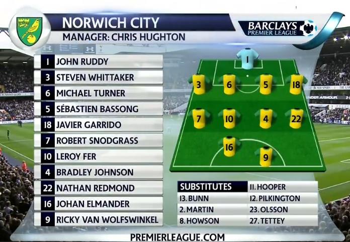(图)热刺与诺维奇的首发阵容