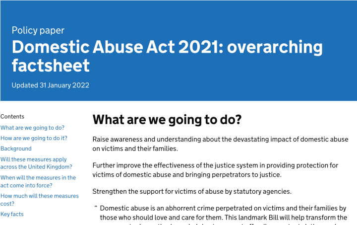 [图]英国最近刚刚更新了政府于2019年底公布的全新家庭暴力法案推进的更多细则,其中着重指出该法案中的大多数条款将在2022新一年度予以生效,同时将会公布全新的家庭暴力保护通知和保护令