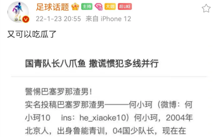 近日,关于04国少队长何小珂私生活混乱的爆料一度引起舆论关注。值得注意的是,这已经不是青训球员们第一次因为场外事件而受到关注。