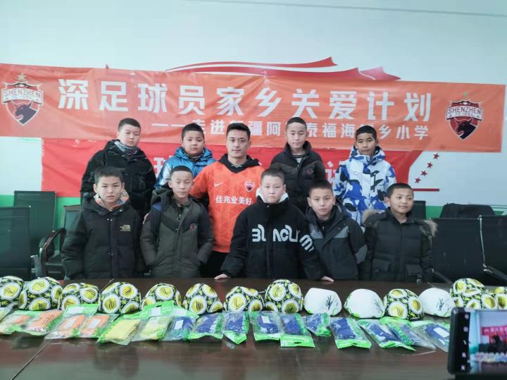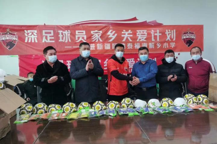深圳市足球俱乐部1月31日,“深足球员家乡关爱计划”第二站来到了球员叶力江·什那尔的家乡新疆阿勒泰。深圳市足球俱乐部为叶力江的母校——福海县解特阿热勒镇中心小学捐赠了200个足球、200双足球袜子等若干由深足俱乐部合作伙伴派迪茵体育友情支持的足球器材。
