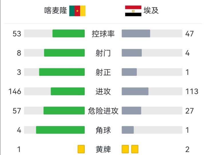 北京时间2月4日03:00,非洲杯半决赛继续进行,喀麦隆对阵埃及。上半场,恩加德久抢点头槌击中立柱,埃卡姆比错失良机。下半场,萨拉赫错失单刀,乌姆-圭特远程发炮击中立柱;双方90分钟互交白卷进入加时赛。加时赛中,双方均无建树。点球大战中,喀麦隆球员穆库迪、西里奇、恩吉耶先后罚失。最终,埃及点球大战3-1淘汰喀麦隆,与塞内加尔会师非洲杯决赛,萨拉赫大战马内。