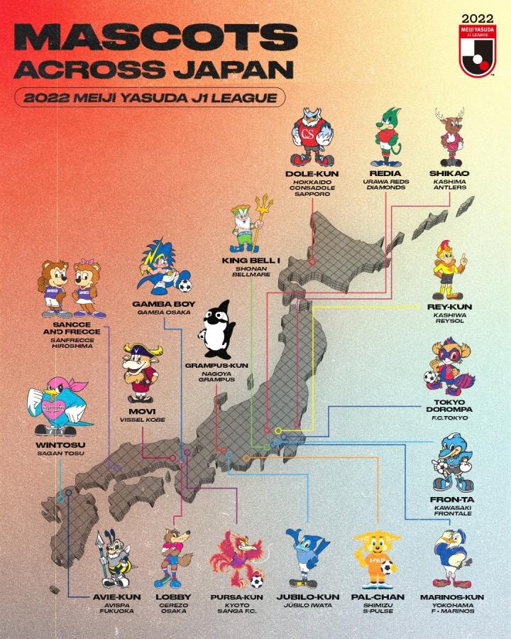 日本J1联赛球队吉祥物一览。