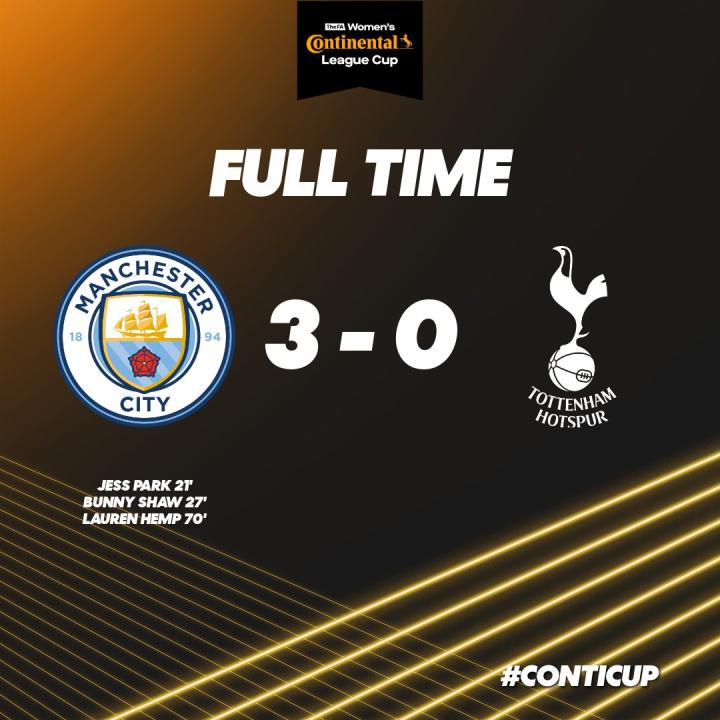 英格兰女足联赛杯半决赛:曼城3-0热刺,决赛对阵切尔西