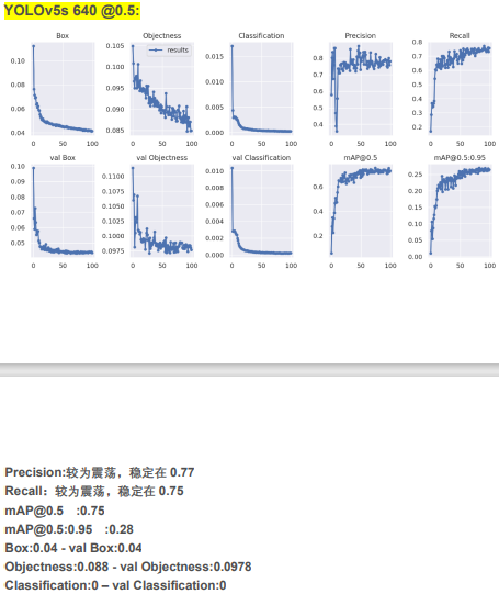 具体训练参数如下: epoch 100 img-size 640×640