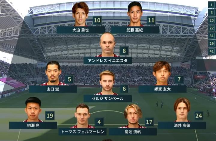 主帅方面,三浦淳宽教练继续执教。他上赛季主打的菱形中场在联赛中稳定高效——拖后的桑佩尔除了防守,还有很强的长传能力;前腰“小白”伊涅斯塔虽然即将年满38岁,但在进攻线上的创造力依然是大部分日本球员难以企及的高度。