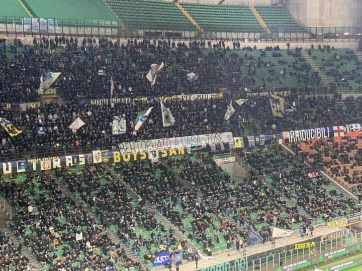 除此之外,来自北看台的国米死忠球迷还专门为穆里尼奥打出了一条横幅,上面写着:“欢迎回家,若泽!”
