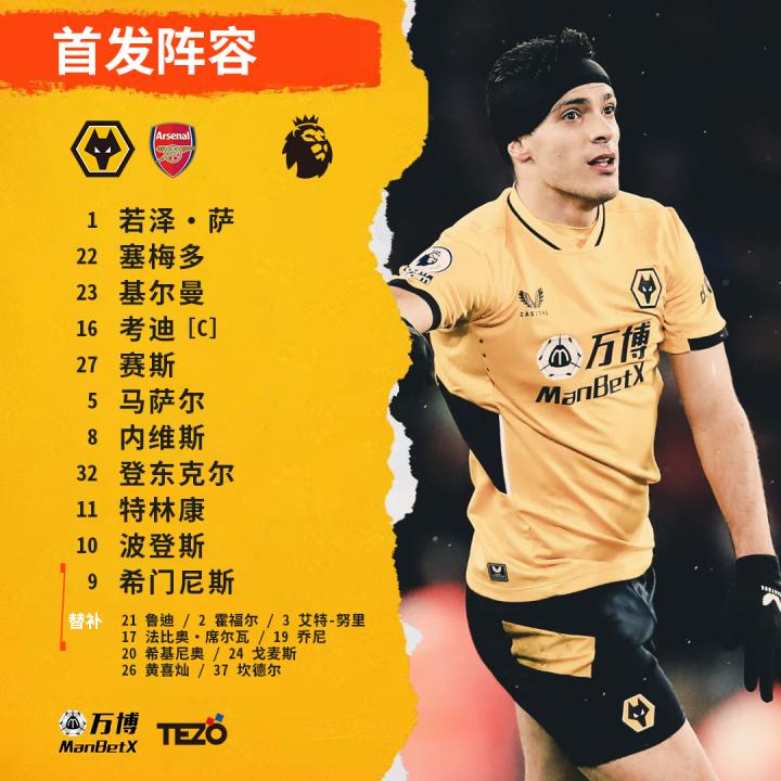 英超联赛第24轮 狼队VS阿森纳 大名单:首发:...英格兰狼队足球俱乐部 @懂球帝2022-02-11 02:45英超联赛第24轮 狼队VS阿森纳 大名单: 首发:1-若泽·萨;16-考迪(C)、27-赛斯、23-基尔曼、22-塞梅多、5-马萨尔;8-内维斯、32-登东克尔;11-特林康、10-波登斯、9-希门尼斯。 替补:21-鲁迪、2-霍福尔、3-艾特-努里、17-法比奥·席尔瓦、19-乔尼、20-希基尼奥、24-戈麦斯、26-黄喜灿、39-坎德尔。展开更多