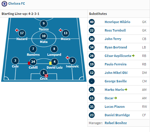 切尔西的首发变动相比半决赛来说变化比较大,3天之内过多的人员调整可能也为本场比赛埋下了伏笔,贝尼特斯的调整从后续来看存在一定的问题。
