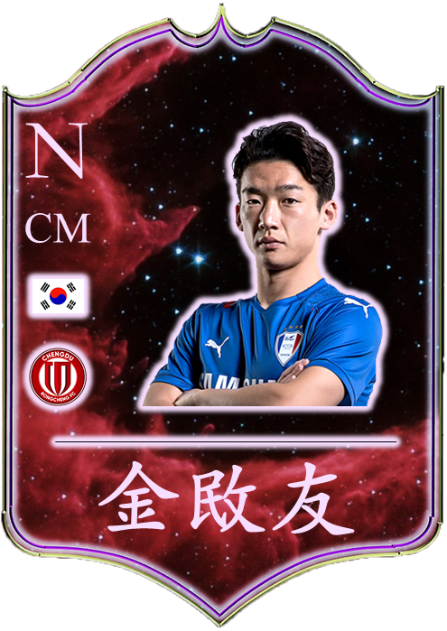 韩国外援金敃(mǐn)友(김민우)身高1米74,司职中场,同时也能胜任左边后卫和前锋,是一位全能战士。在汉语中,敃字有强横、顽悍之意,金敃友人如其名,也拥有着强大的精神力。金敃友惯用左脚,右脚同样能够制造威胁,他的速度一般但耐力极强,触球简洁实用。他非常善于阅读比赛,具有相当高的球商。